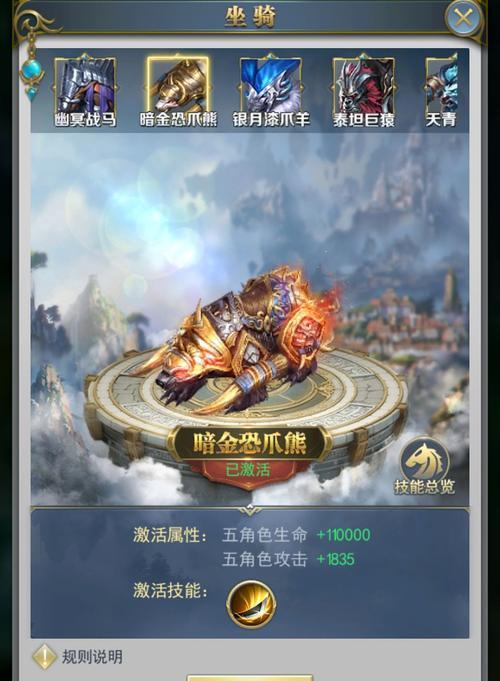 《斗罗大陆》作为一部深受读者喜爱的玄幻小说,不仅仅在人物塑造、情节发展上取得了成功,而且在坐骑系统的设计上也给人留下了深刻的印象。本文将以《斗罗大陆》中的坐骑系统为主题,深入探讨其中的培养和进阶玩法,带领读者一同揭开这个神秘系统的面纱。