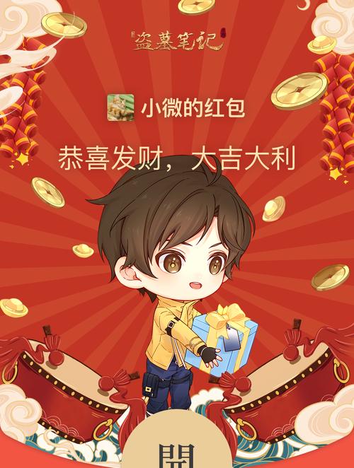 12.红包封面设计:未定事件簿新春专属红包封面采用了中国传统红色为底色,并加入了春联、元宝等元素,寓意着新春吉祥,财源广进。